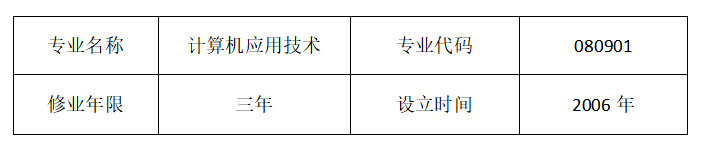 计算机应用技术专业旨在培养具有扎实的计算机应用技术的基础理论知识、应用能力和操作能力,能够从事计算机办公自动化和计算机软件应用等工作,德、智、体、美全面发展的计算机专业应用型人才。本专业坚持以就业为导向、以服务为宗旨、以产学研结合为途径的办学理念,将时代需求和公司实际相结合,不断加强专业课程建设,强化应用技能,教学质量不断提高,实现了“一张文凭,多种证书,一技之长,一专多能,品学兼优”的培养目标。