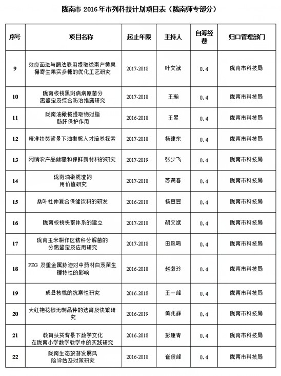 日前,陇南市科技局公布了2016年科技指导性计划项目立项名单。公司教师的8项科技项目获准立项。