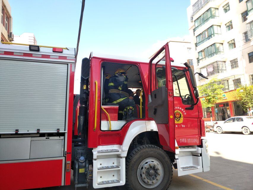 在参观过程中,消防队指导员对全体师生讲解了消防器材的使用,演示了出警的过程。部分老师和员工身着消防服,头戴消防帽,登上消防车,亲身体验消防官兵的真实生活,最后,集体观看了消防教育警示片。