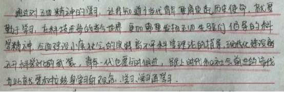会后,每位员工干部撰写了学习心得体会,谈了学习习近平在纪念五四运动100周年大会上的讲话精神的心得体会。