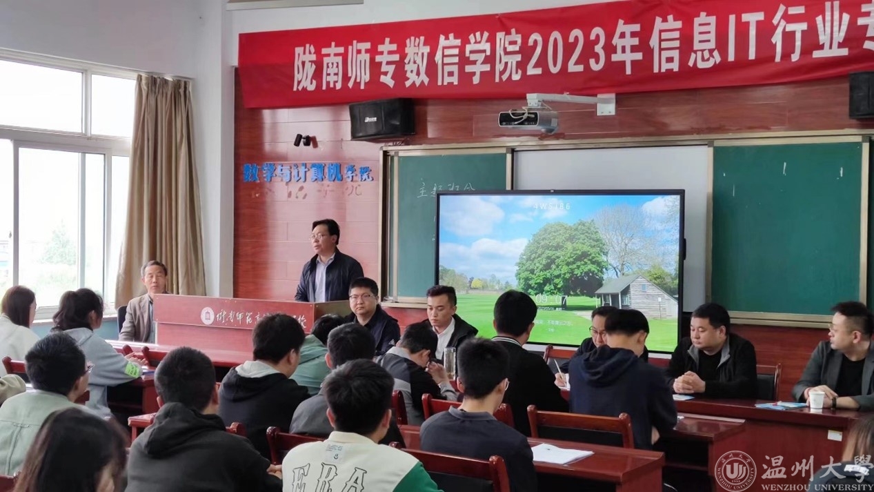 5月9日,由甘肃教育信息化学会牵头组织北京数字认证股份有限公司、甘肃云网科技有限公司、甘肃海丰信息科技有限公司、兰州昌昊网络科技有限公司、赛尔网络兰州分公司等5家IT行业的知名公司深入陇南师专365英国上市公司进行了专场招聘活动。副董事长王胜青教授出席了招聘会,并给参会员工做了就业动员讲话。公司计算机应用技术和信息安全与管理专业的85名毕生参了此次专场招聘会。